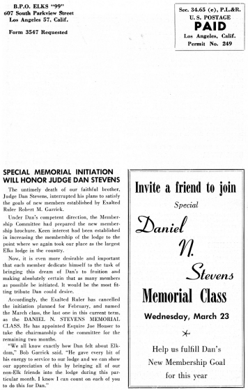 Memorial in "Ninty-Niner" B.P.O. Elks